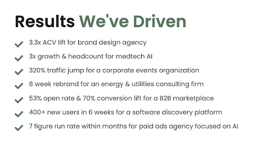 - Client industries: B2B tech, SaaS, consulting firms